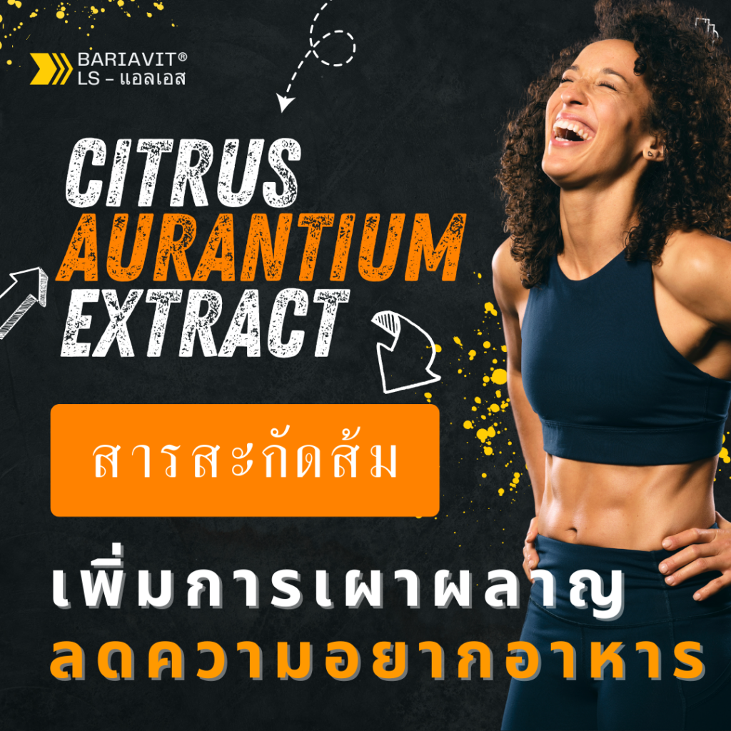 สารสกัดจากส้มที่เราให้ความสนใจในที่นี้คือ Citrus aurantium หรือที่เรียกว่า “Bitter Orange” โดยเฉพาะเจ้า synephrine ซึ่งเป็นสารสำคัญที่พบในส้มที่มีรสขมนี้ ซินีเฟรนเป็นสารกระตุ้นระบบประสาทที่มีลักษณะคล้ายกับเอฟีดรีน และมีการศึกษาแล้วพบว่าอาจช่วยเพิ่มการเผาผลาญไขมันในร่างกาย (Source: Journal of the International Society of Sports Nutrition)